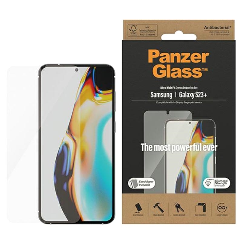 • PanzerGlass Ultra-Wide Fit AntiBacterial Panzerglas für Samsung Galaxy S23 Plus 5G (Galaxy S23+ 5G)