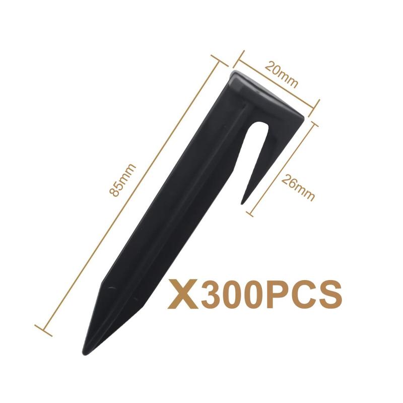 Sichern Sie Ihre Gartenanlagen mit diesem umfassenden Satz von 300 Kunststoff-Bodenklammern. Mit einer Länge von jeweils 8,5 cm sind diese langlebigen Klammern ideal für die Verankerung von Begrenzungskabeln für Rasenmäher, Garteneinfassungen und verschiedenen Landschaftsbaumaterialien geeignet und sorgen für einen sauberen und ordentlichen Außenbereich.