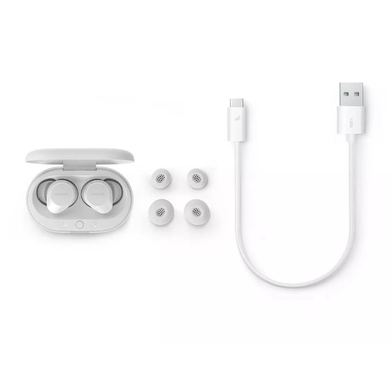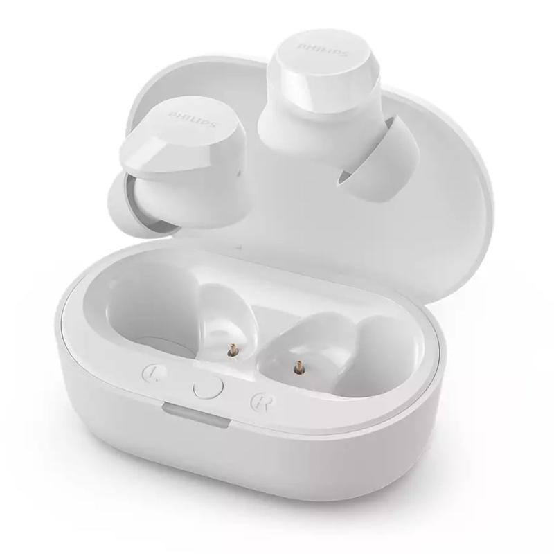 Erleben Sie die Freude am mühelosen Hören mit den Philips True Wireless-Kopfhörern. Diese kompakten und dennoch leistungsstarken Ohrhörer bieten dynamische Bässe, die Ihre Lieblingstitel zum Leben erwecken - selbst bei geringer Lautstärke. Dank eines speziellen Mikrofons mit Rauschunterdrückungstechnologie klingen Ihre Anrufe klar und ungestört. Die auf Komfort und Bequemlichkeit ausgelegten Kopfhörer verfügen über ein Ladegerät im Taschenformat, eine robuste Bluetooth-Verbindung und eine spritzwassergeschützte IPX4-Konstruktion, die für alles gerüstet ist, was der Tag so mit sich bringt.