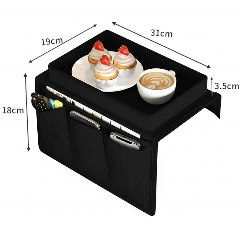 Der platzsparende Sofa-Armlehnen-Organizer bietet eine clevere und bequeme Möglichkeit, Ihren Wohnraum aufgeräumt zu halten, indem er Ihre täglichen Utensilien direkt neben Ihnen aufbewahrt. Er besteht aus strapazierfähigem Oxford-Gewebe und ist staub- und verschleißfest, so dass er lange genutzt werden kann, ohne seine Form zu verlieren. Die verstärkte zentrale Ablage aus Oxford-Gewebe und Pappe sorgt für Stabilität und ordnet die Gegenstände ordentlich an.