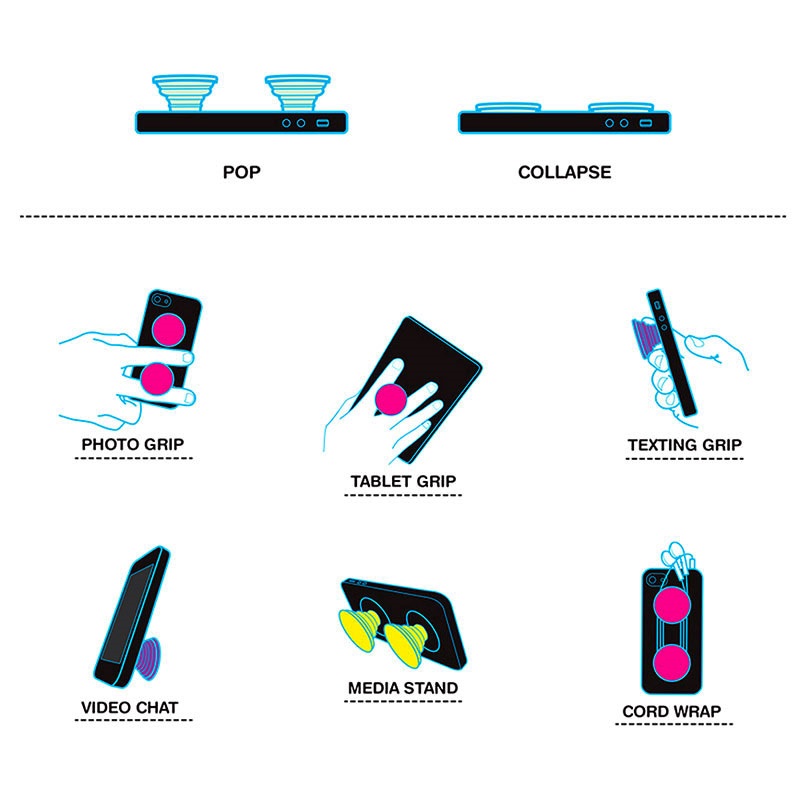 PopSockets "poppen", d.h. entfalten sich jederzeit sofort, wenn sie einen Handygriff, einen Handyständer, einen Aufstellvorrichtung für Ihre Kopfhörer oder einfach etwas zum Spielen brauchen.