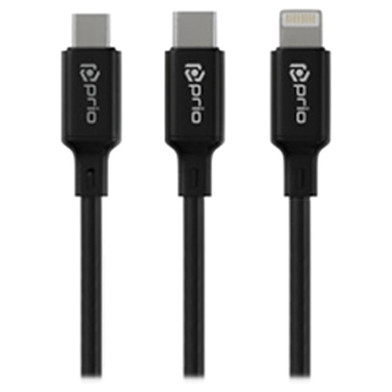 Prio High-Speed 3-in-1 Ladekabel - Lightning, USB-C, MicroUSB, 3A, 18W