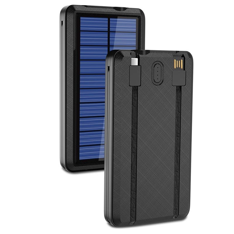 Und wenn der Powerbank selbst einmal der Saft ausgeht, während du im Freien bist, kannst du sie in direktes Sonnenlicht stellen und das eingebaute Solarpanel das Aufladen übernehmen lassen.