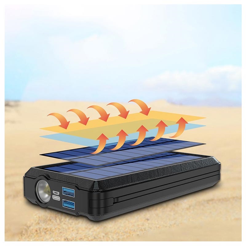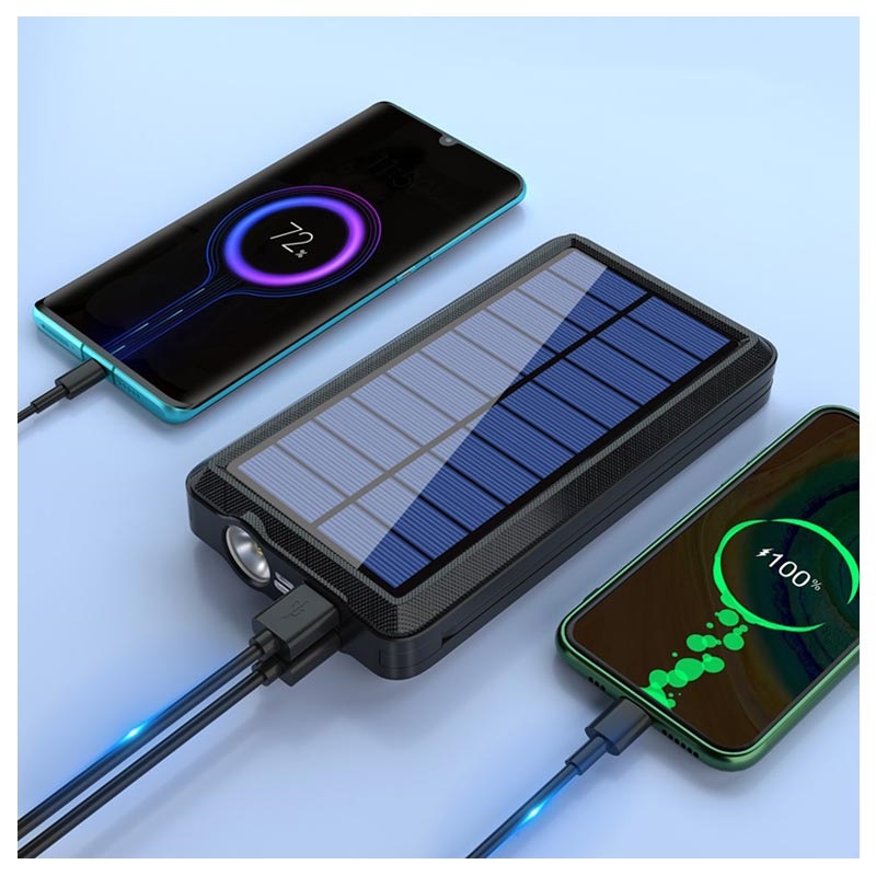 PSOOO PS-158 Kabellose Solar-Powerbank mit Taschenlampe - USB-C, Lightning, MicroUSB, USB-A, Qi