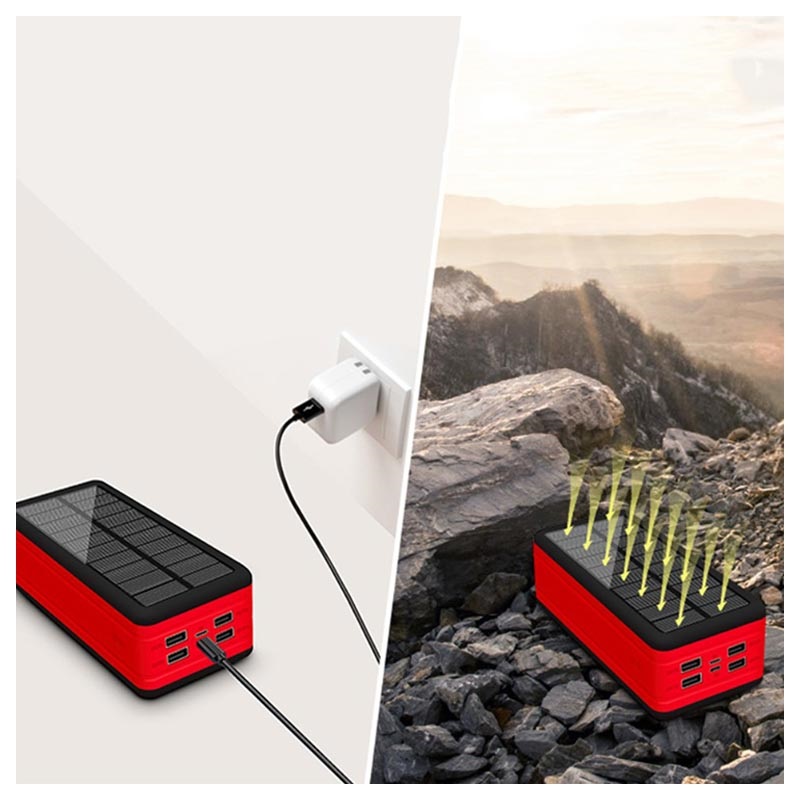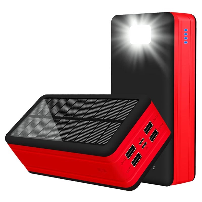 Psooo PS-400 Solar Powerbank - 4xUSB-A, 50000mAh - Rot