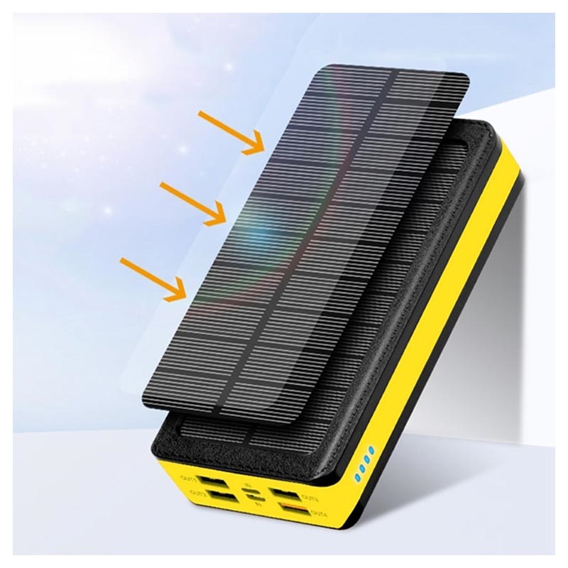 Die Psooo PS-406 Solar-Powerbank / kabelloses Ladegerät mit großer Kapazität ermöglicht es Ihnen, bis zu sechs Geräte gleichzeitig aufzuladen. Diese superschnell ladende Powerbank ist mit einem PD3.0-USB-C-Anschluss, einem QC3.0-USB, drei USB-A-Anschlüssen und einem kabellosen 15-W-Ladegerät ausgestattet, so dass Sie alle Ihre digitalen Geräte aufladen können, während Sie auf Ihren Outdoor-Abenteuern sind. Dank eines integrierten monokristallinen Silizium-Solarmoduls und eines Mehrfachschutzsystems für sicheres und zuverlässiges Laden verfügt es über eine sehr hohe Energieumwandlungsrate.