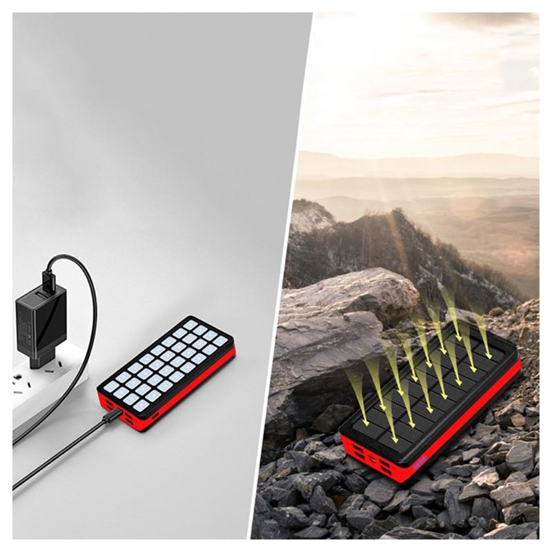 Psooo PS-900 Solar Powerbank mit LED-Licht - 30000mAh - Rot