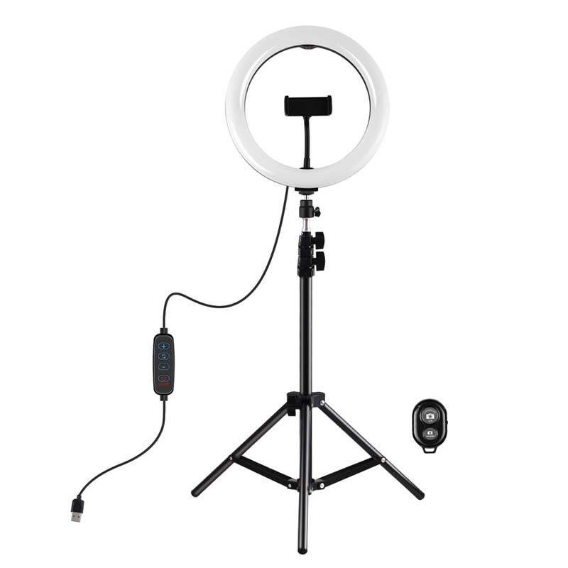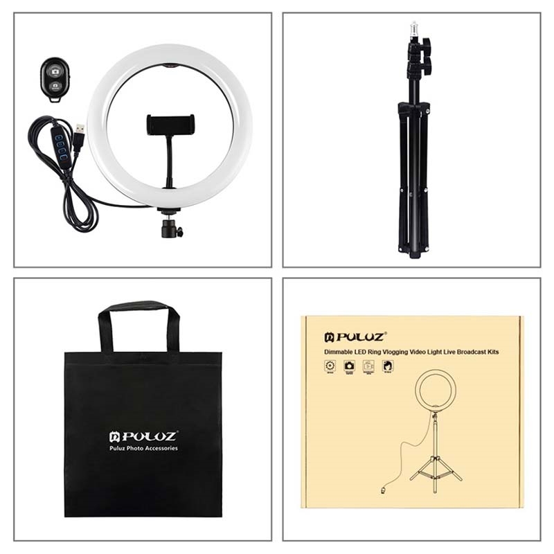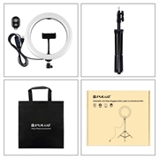 PULUZ PKT3069B 1.1m Stativhalterung + 10.2" 26cm Dimmbare Dual Farbtemperatur USB LED Ring Lights Selfie Fotografie Video Fülllicht mit Telefonklammer & Selfie Fernbedienung