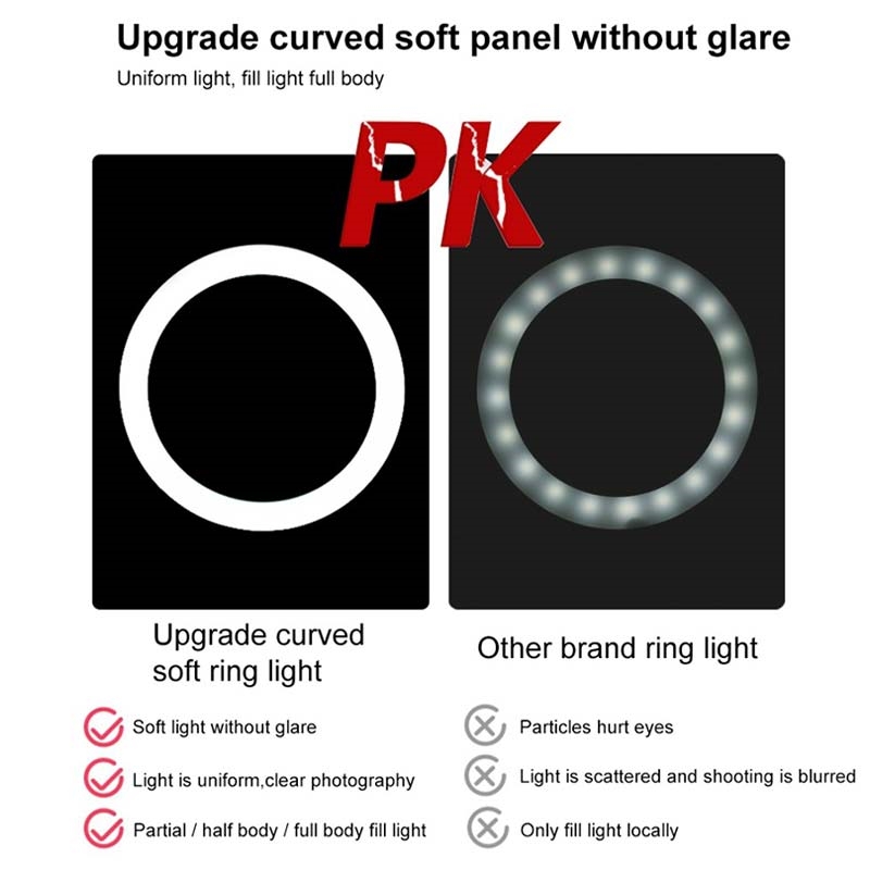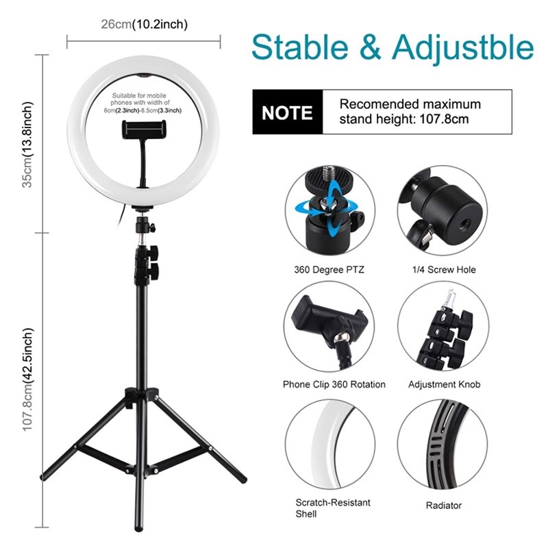 Das Ringlicht besteht aus 2x60pcs energiesparende LED-Perlen, es Wärmeableitung ist ausgezeichnet, Konstantstrom Antrieb und hohe Farbwiedergabe, erweichen die Lichtquelle und verbessern Hautton in Porträts Fotografie