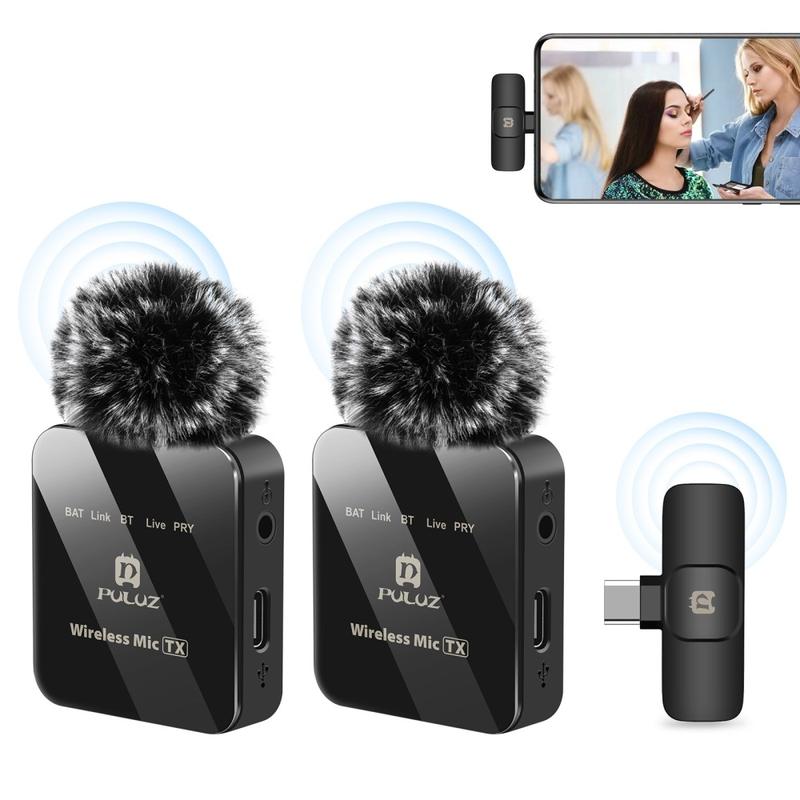 Puluz PU648B - Zweierpack kabelloser Lavalier-Mikrofone mit Typ-C-Empfänger - Schwarz