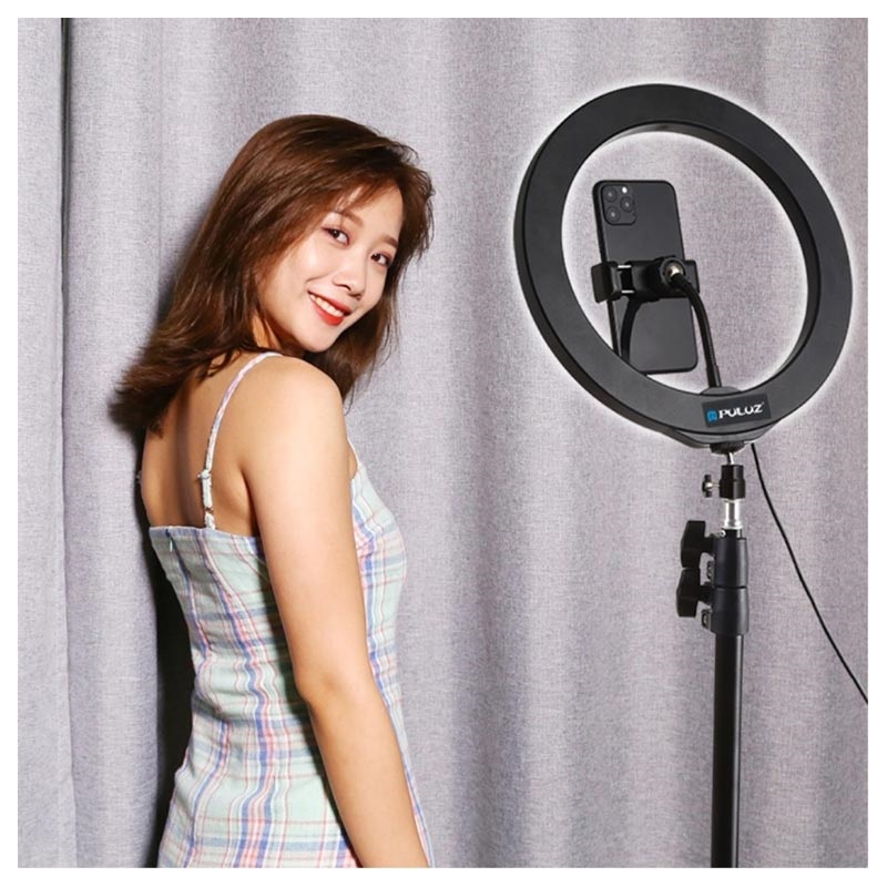 - Puluz-Stativ mit RGBW-Ringlicht und Handy-Halterung