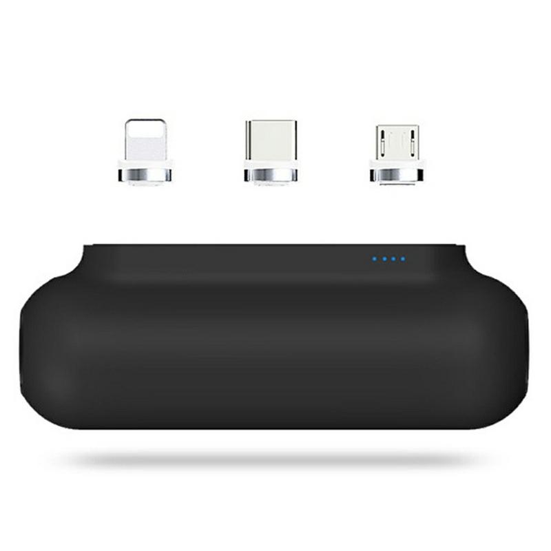 • PUP-0373-V2 Mini Power Bank 3200mAh - Tragbares Ladegerät mit magnetischen Lightning + Micro-USB + USB-C Anschlüssen, LED-Batterieanzeige