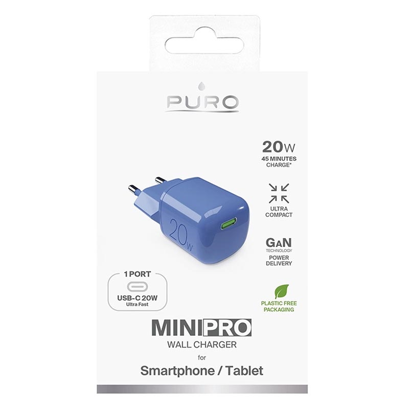 Puro Minipro GaN USB-C-Wandladegerät – 20W, Power Delivery