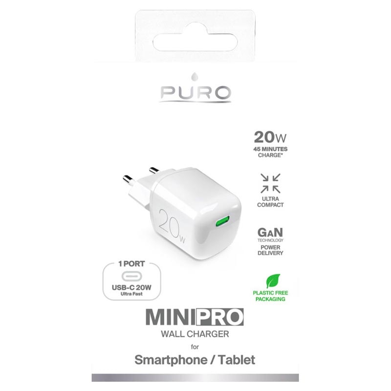 Puro Minipro GaN USB-C-Wandladegerät – 20W, Power Delivery