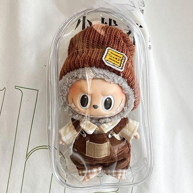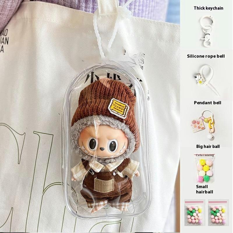 PVC-Aufbewahrungsbeutel mit Schlüsselanhänger für 17cm Labubu Plüsch & Mini-Figuren