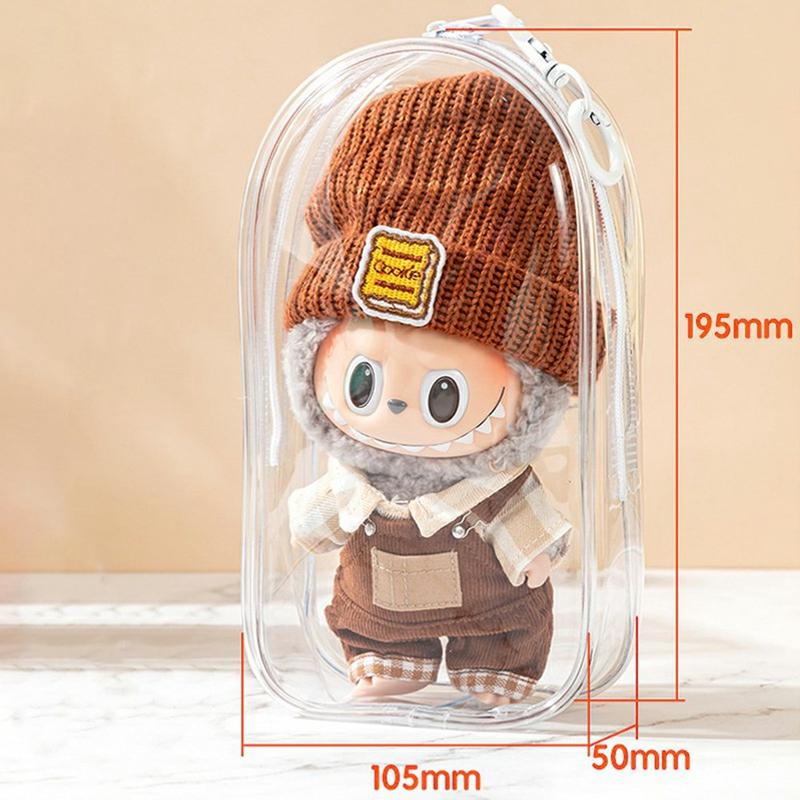 • PVC-Aufbewahrungsbeutel mit Schlüsselanhänger für 17cm Labubu Plüsch- und Minifiguren - staubgeschützte, tragbare Aufbewahrungstasche