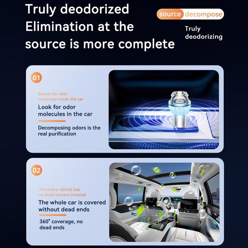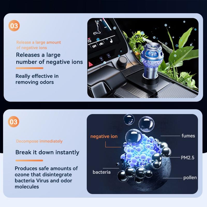 Im Gegensatz zu herkömmlichen Auto-Lufterfrischern, die unerwünschte Gerüche lediglich überdecken, wurde dieser Luftreiniger entwickelt, um Geruchsmoleküle direkt zu bekämpfen. Seine Reinigungsreichweite von 720 Grad sorgt für eine gleichmäßigere Luftbehandlung im gesamten Innenraum und hilft dabei, die Luft rund um Fahrer, Beifahrer, Sitze und Fußraum zu erfrischen. Die Kombination aus hochkonzentrierten negativen Ionen und geringem Ozonanteil sorgt gemeinsam für ein angenehmeres Fahrzeugklima während des täglichen Pendelns, auf langen Fahrten oder im Stau.