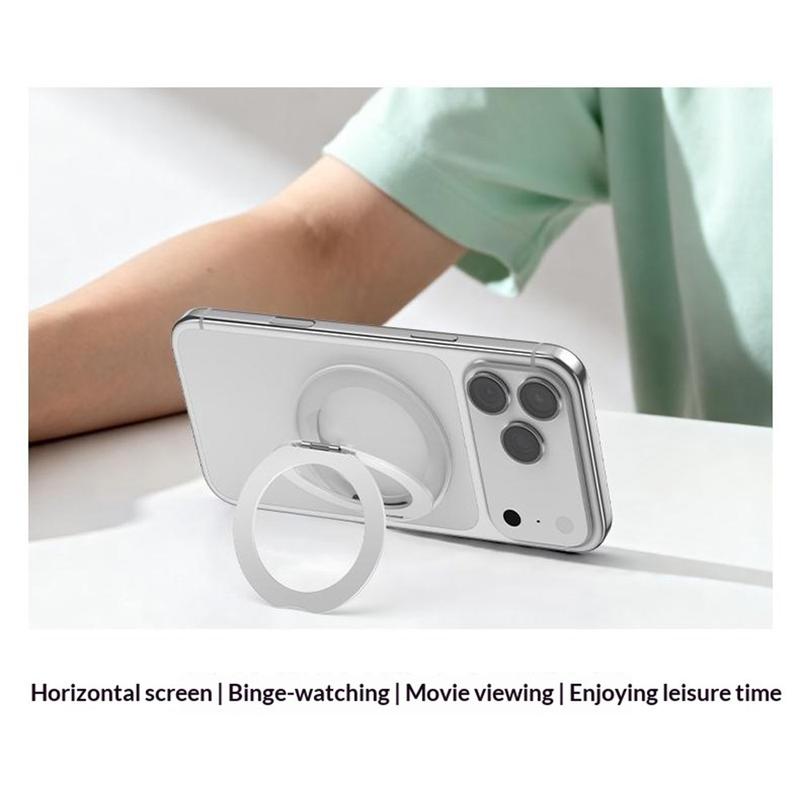 Der ultradünne, dreifach faltbare magnetische Ringständer des Q11 ist ein eleganter Telefongriff und -ständer, der für den flexiblen Einsatz im Alltag entwickelt wurde, ohne dabei aufzutragen. Mit seiner dreifach faltbaren Struktur lässt er sich kompakt zusammenklappen, wenn er nicht gebraucht wird, während die 360°-Drehung eine schnelle Anpassung zwischen Hoch- und Querformat ermöglicht. Die selbstklebende Rückseite ermöglicht eine schnelle und sichere Installation, und der integrierte Magnet sorgt für Kompatibilität mit magnetischen Halterungen und Zubehör.