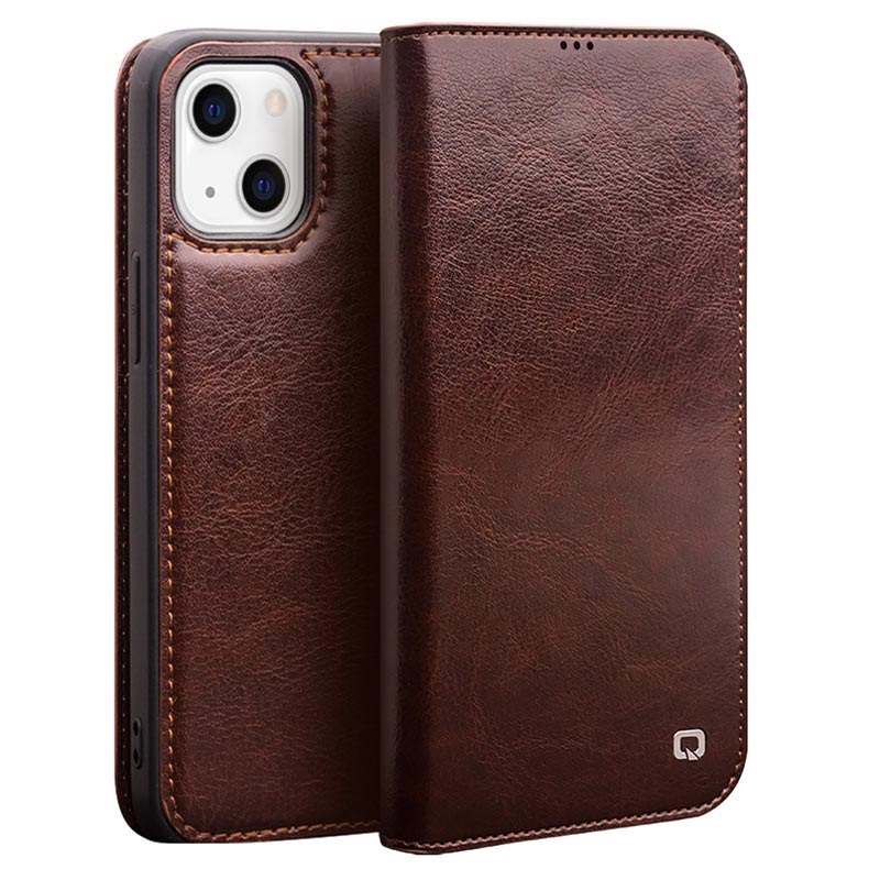 Qialino Classic iPhone 13 Mini Lederhülle mit Geldbörse - Braun