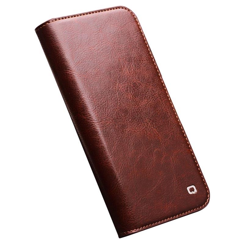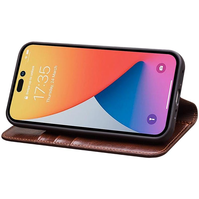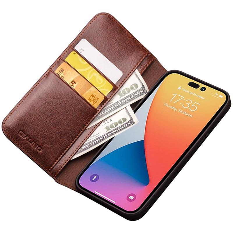 Qialino Classic iPhone 14 Pro Max Lederhülle mit Geldbörse - Braun
