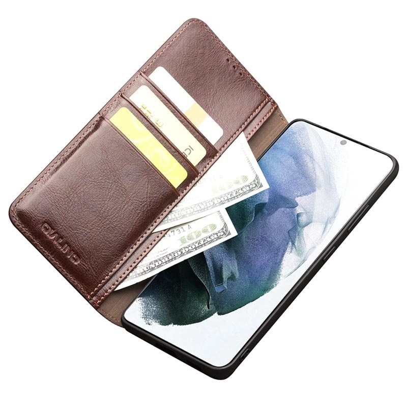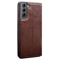 Qialino Classic Samsung Galaxy S21+ 5G Lederhülle mit Geldbörse - Braun