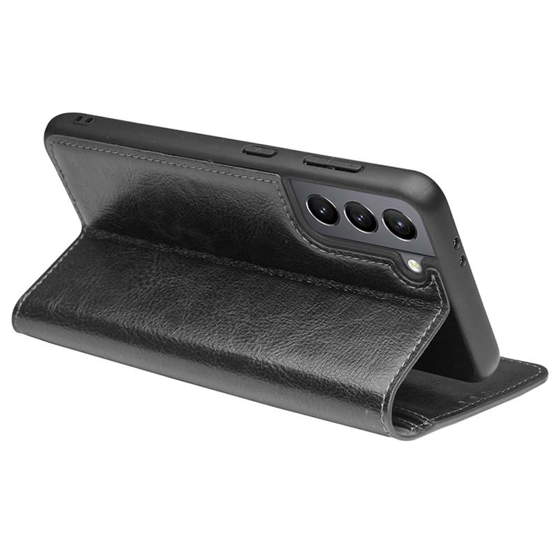 Hergestellt aus echtem Leder, verleiht es Ihrem Smartphone einen zeitlosen Look und zeichnet sich durch eine außergewöhnliche Haltbarkeit aus. Außerdem hält es Ihr Samsung Galaxy S21+ 5G sicher vor Stößen, und die mehreren Steckplätze lassen Sie Ihre Brieftasche zu Hause und optimieren Ihre Taschen.