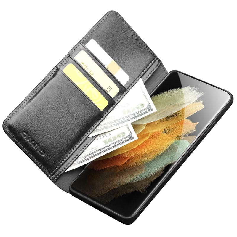 • Qialino Classic Lederhülle mit Geldbörse für Samsung Galaxy S21 Ultra 5G