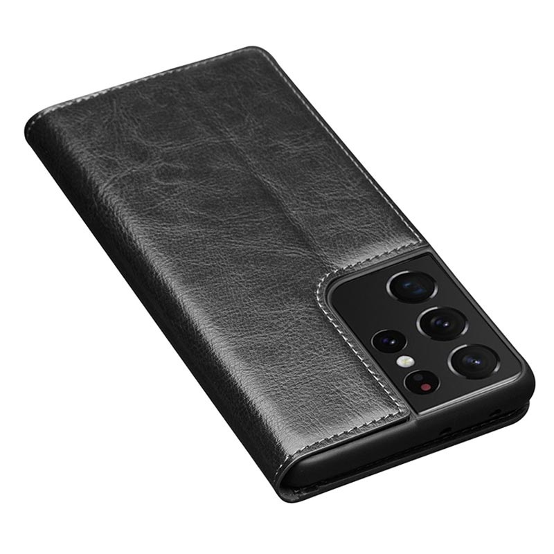 Qialino Classic Samsung Galaxy S21 Ultra 5G Lederhülle mit Geldbörse - Schwarz