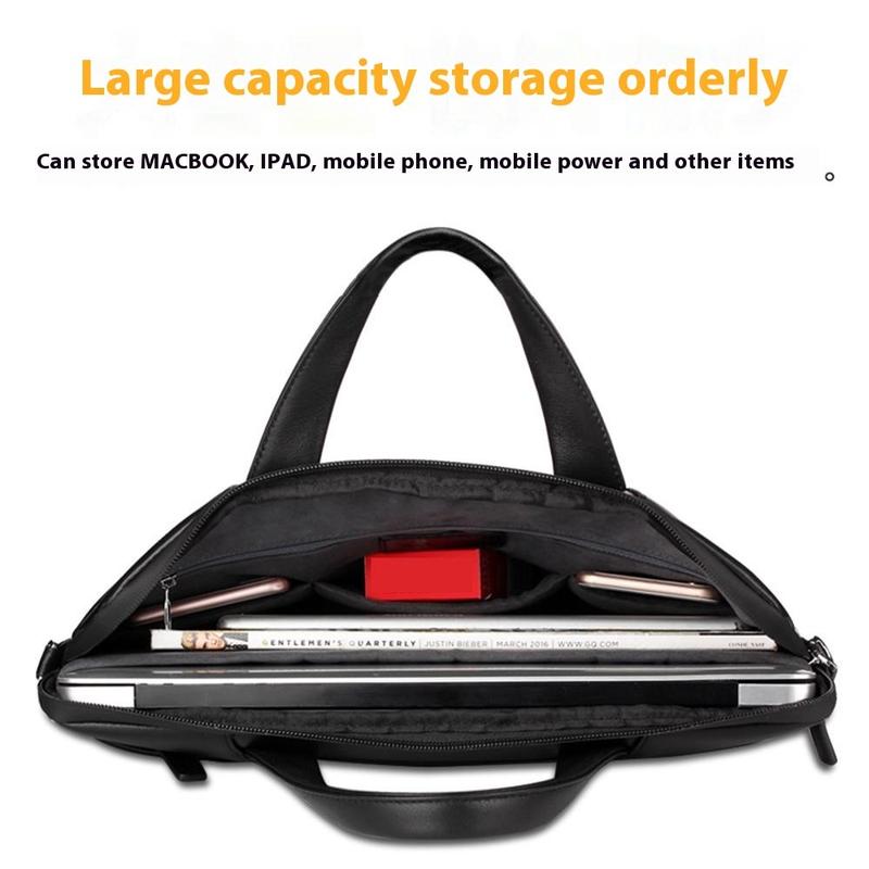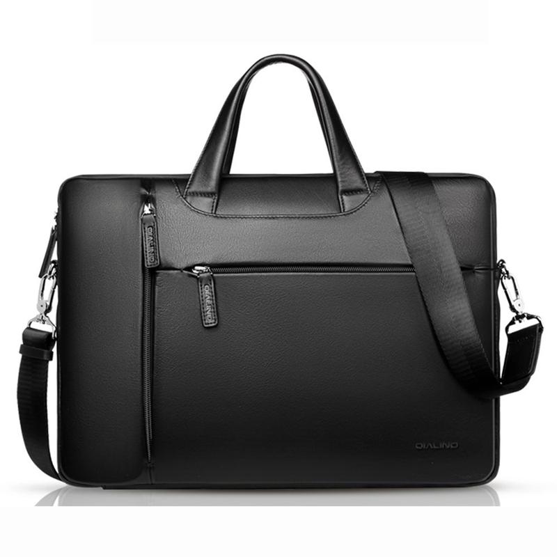 Gönnen Sie Ihrem Notebook eine erstklassige Behandlung mit dieser Laptoptasche von Qialino, die aus hochwertigem Rindsleder gefertigt ist, das alltägliche Spritzer abwehrt und dabei mühelos professionell aussieht. Ein Plüsch-Fleece- und Perlen-Baumwoll-Futter polstert Geräte bis zu 15 Zoll, und mit dem abnehmbaren Schultergurt können Sie in Sekundenschnelle zwischen Aktentasche und Crossbody-Trageweise wechseln. Mehrere Innentaschen sorgen dafür, dass Telefon, Powerbank und Notebook auf Reisen gut organisiert sind.