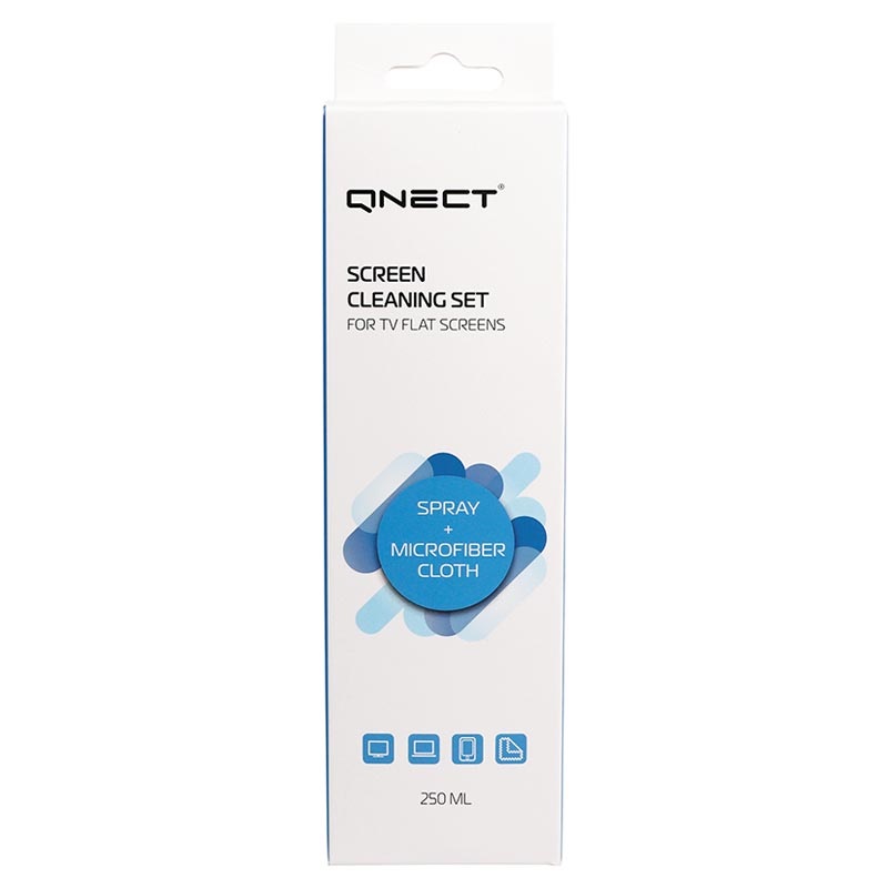- Das Qnect-Bildschirmreinigungsset kombiniert 250 ml Desinfektionsspray und ein weiches Tuch