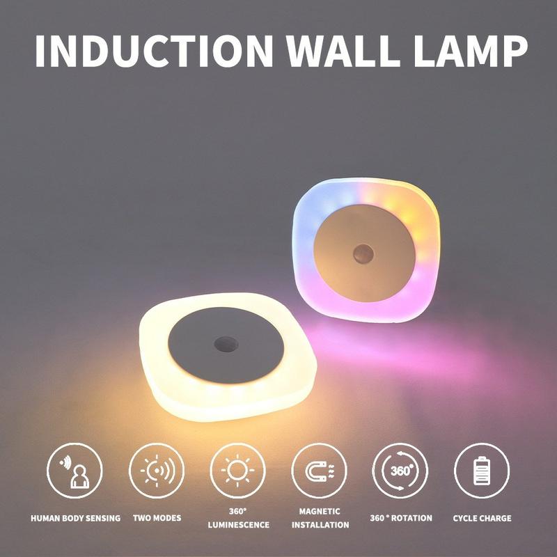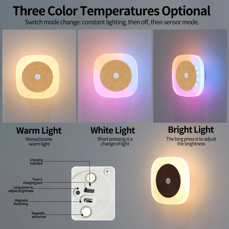 Quadratisches LED-Nachtlicht mit Bewegungssensor - magnetische, wiederaufladbare Wandleuchte mit 3 Farbtemperaturen und um 360° drehbarem Umgebungslicht
