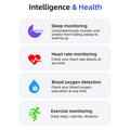 - Umfassendes Gesundheits-Tracking über die Smart Health App - Überwacht Herzfrequenz, Blutsauerstoff, Schlafqualität und Aktivitätslevel.