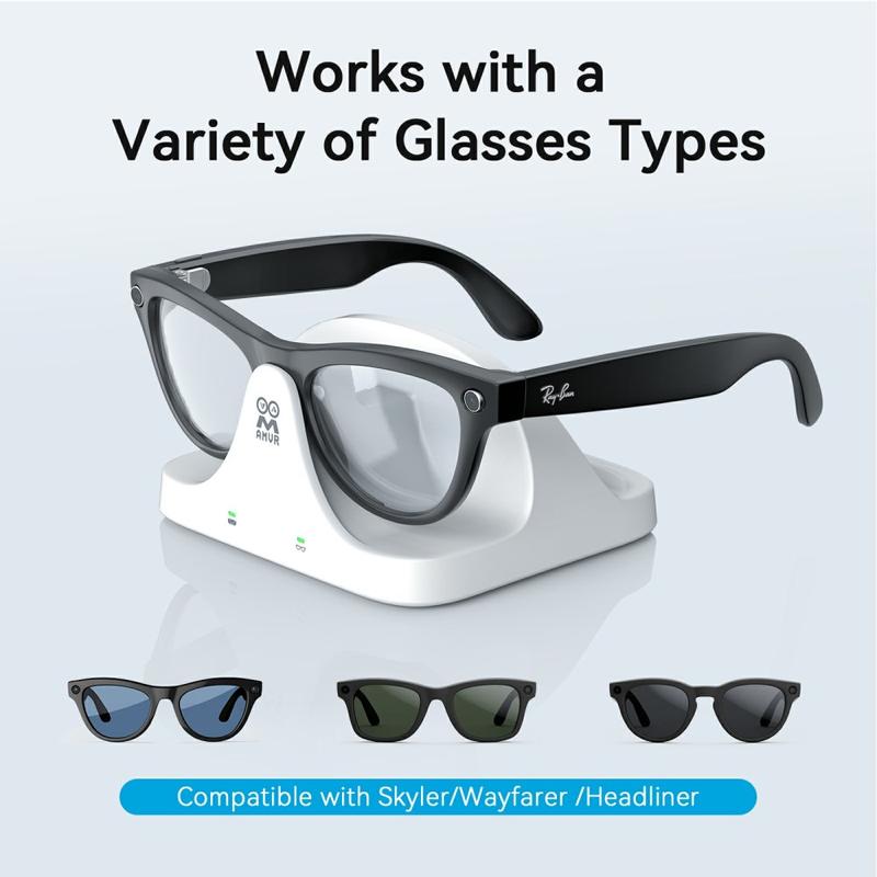 Die AMVR CD3 Ladestation wurde entwickelt, um Ihre Ray-Ban Meta AI Brille und ihr Ladeetui gleichzeitig zu betreiben. Genießen Sie effizientes, gleichzeitiges Laden, ohne Kabel oder Anschlüsse zu tauschen.