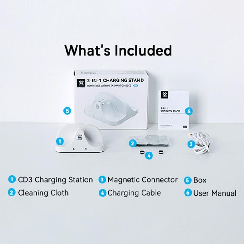 AMVR CD3 Magnetische 2-in-1 Schnellladestation für Ray-Ban Meta AI Brillen Gen 1, Gen 2