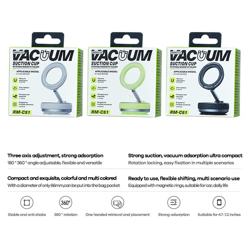 • REMAX RM-C51 3-Achsen-Magnet-Telefonhalterung - Vakuum-Saugnapfhalterung für Auto, Haus und Reise