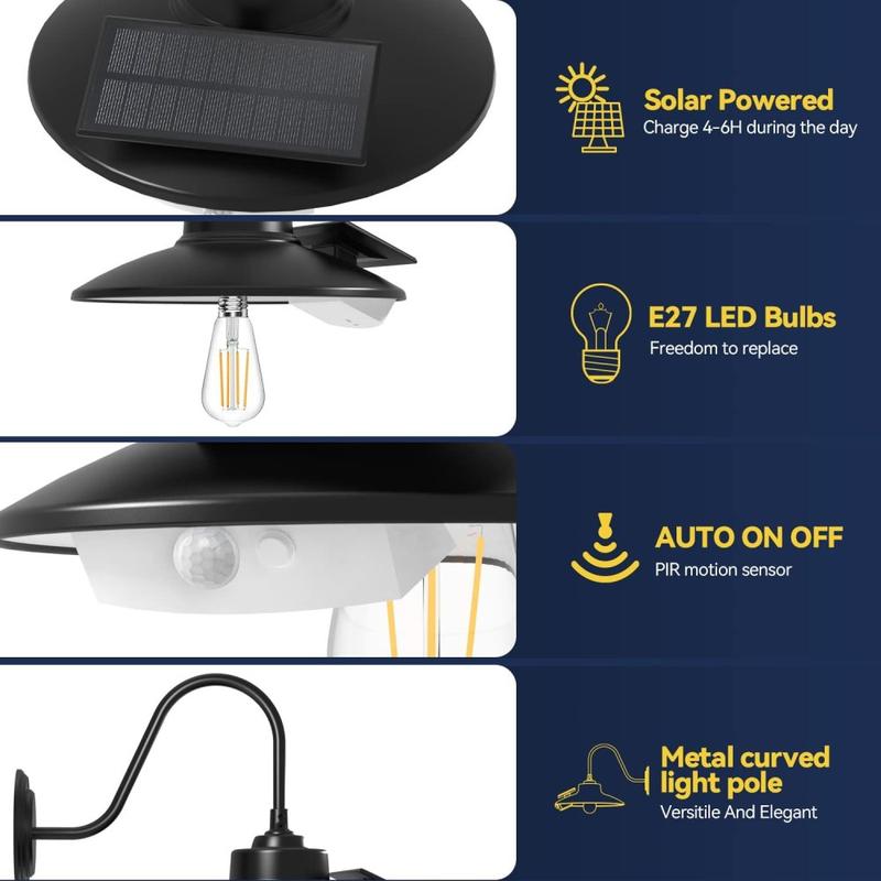 Retro-Solar-Scheunenleuchte mit Edison-LED und Bewegungssensor - 3-Modi IP65-Wandleuchte für den Außenbereich