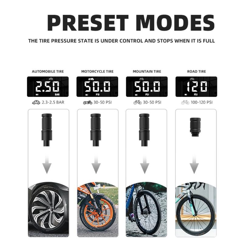 Es kann zum Aufpumpen verschiedener Produkte verwendet werden, die aufgepumpt werden müssen, wie z. B. Autoreifen, Fahrradreifen, Motorradreifen, Bälle usw., mit einer breiten Palette von Anwendungen