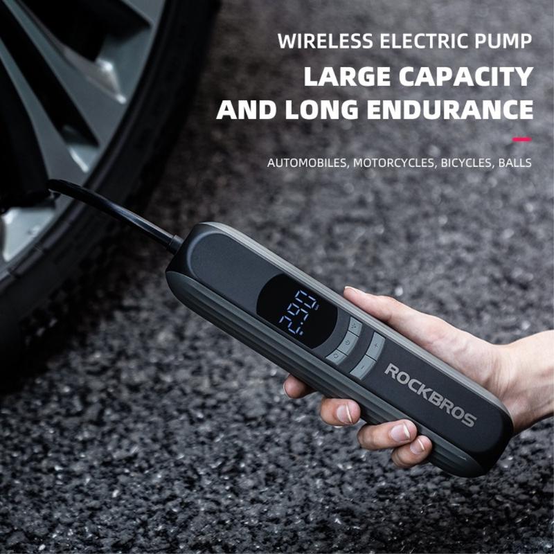 ROCKBROS A10 Auto-Motorrad-Fahrrad-Reifenluftpumpe Tragbare kabellose elektrische Fahrzeug-Reifenfüllpumpe mit LED-Licht