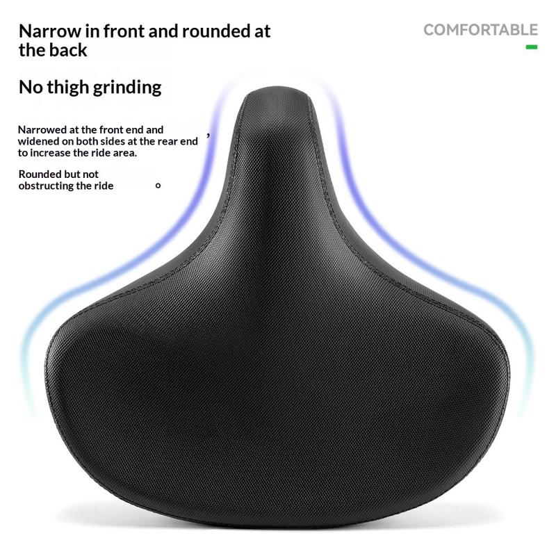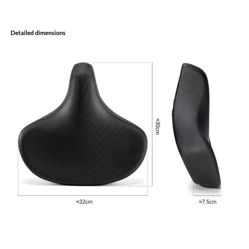 Sein ca. 32 cm breites Design bietet Ihnen eine größere Sitzfläche, wodurch der Druck gleichmäßiger verteilt und der Komfort auf längeren Strecken verbessert wird. Der dicke gepolsterte Schaumstoff hilft, Stöße von unebenen Straßen und unwegsamem Gelände zu absorbieren, was ihn zu einer praktischen Aufrüstung für Mountainbikes, Freizeitfahrräder, Tourenräder und E-Bikes macht. Ob Sie durch die Stadt, auf Schotterwegen oder bei Wochenendausflügen mit dem Fahrrad unterwegs sind, dieser Sattel ist für stabilen Komfort im Alltag ausgelegt.