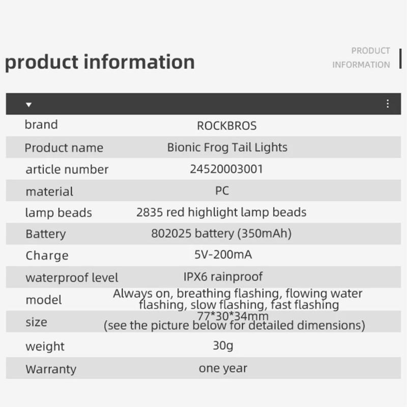 ROCKBROS RFL02 LED Fahrrad-Rücklicht Frosch Fahrrad hinten Radfahren Sicherheit Taschenlampe Bremslicht - Grün