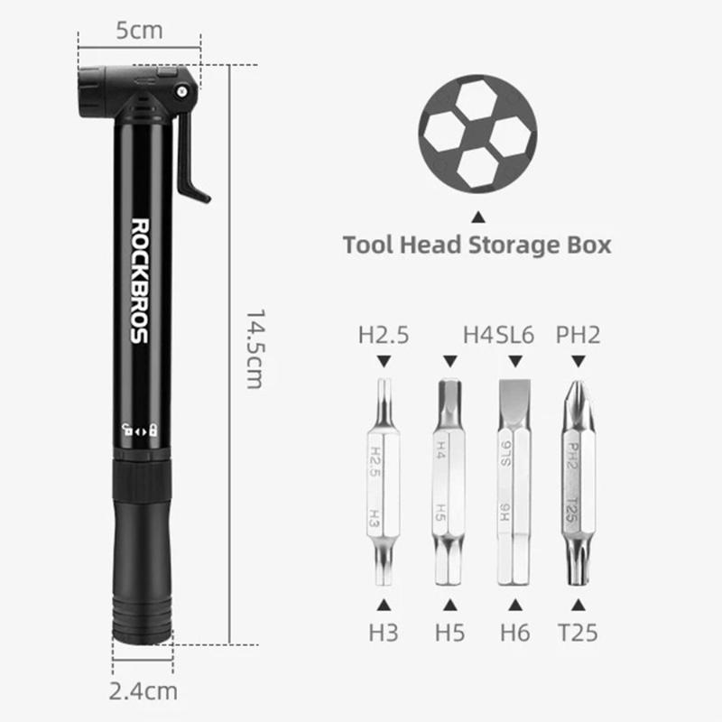 • ROCKBROS TG-1616 Tragbare 120PSI Fahrrad E-Bike Reifen Luftpumpe Fahrrad Basketball Metall Inflator mit Ratsche Werkzeuge