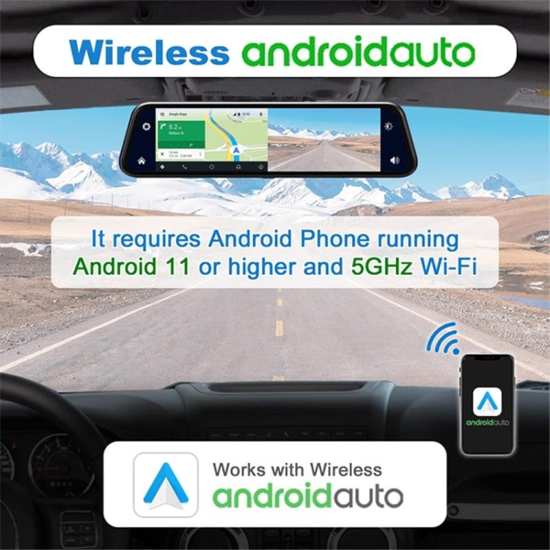 Touchscreen Rückspiegel Dual Dash Cam mit GPS Navigation, Android Auto, CarPlay, Bluetooth, Mirror Link - 9"