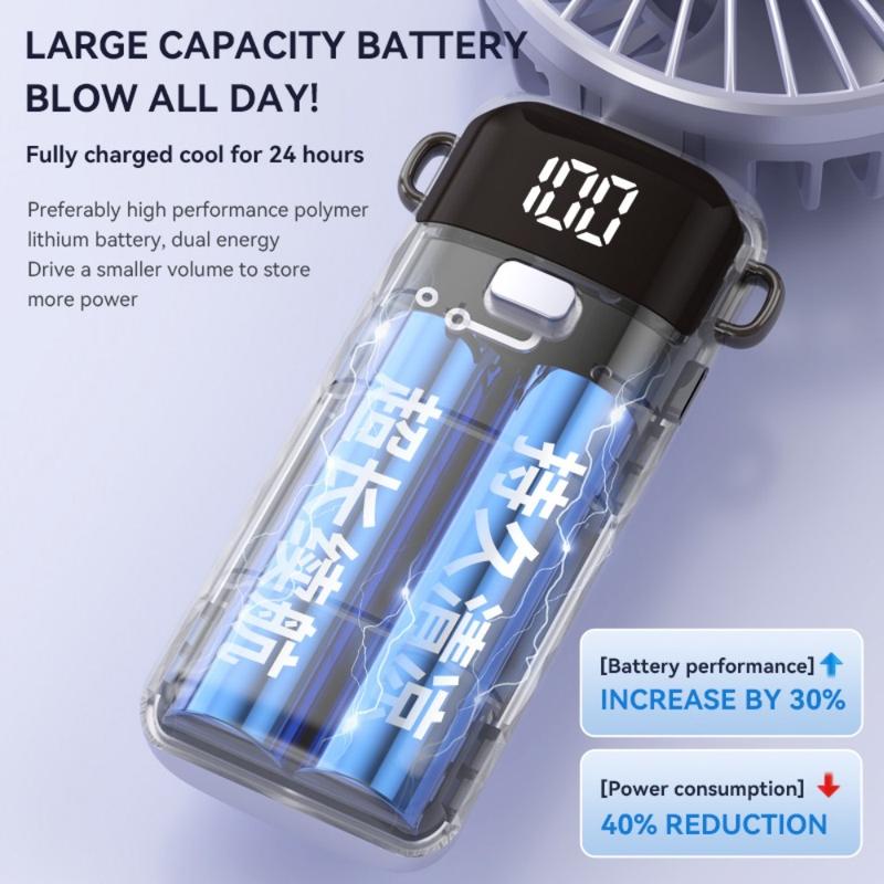 Das integrierte LED-Display sorgt für zusätzlichen Komfort, da es die aktuelle Geschwindigkeitsstufe und den Akkustatus auf einen Blick anzeigt. In Kombination mit dem leisen Betrieb, dem USB-C-Ladeanschluss und einem wiederaufladbaren 1500-mAh-Akku ist der S1-Mini-Ventilator ein praktischer Begleiter für den Alltag, der Sie überall kühl hält.