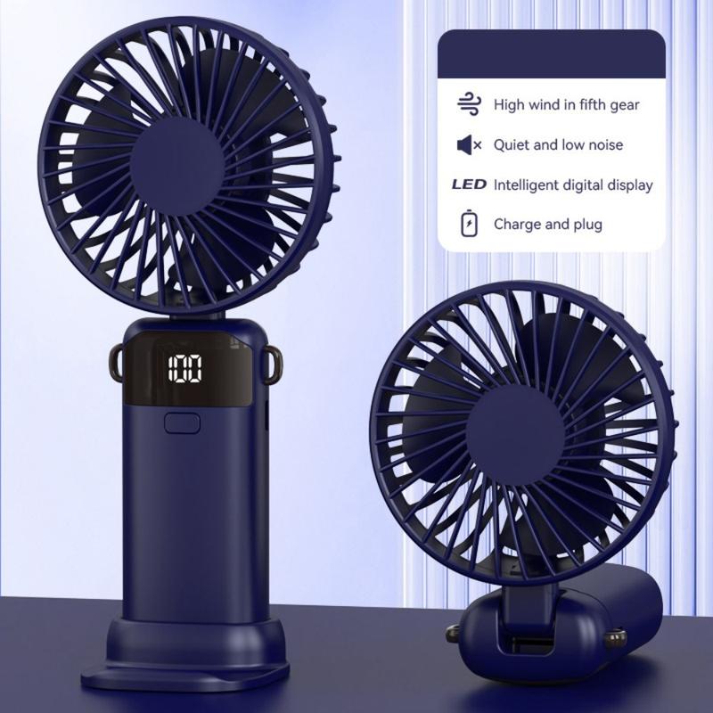 S1 Zusammenklappbarer Mini-Handventilator mit LED-Anzeige und 5 Geschwindigkeitsstufen - Blau