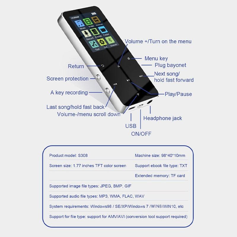 Verbessern Sie Ihr Musik-, Lern- und Unterhaltungserlebnis mit dem S308 16GB Touchscreen MP4 Player - eine perfekte Mischung aus Technologie, Komfort und hochwertigem Sound!