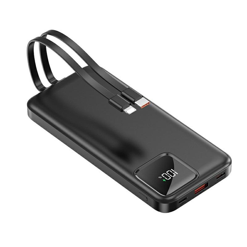 S38N Slim 10000mAh Power Bank - 22.5W Schnellladung mit integriertem USB-C & Lightning Kabel, digitaler Batterieanzeige, Multi-Port Ausgang