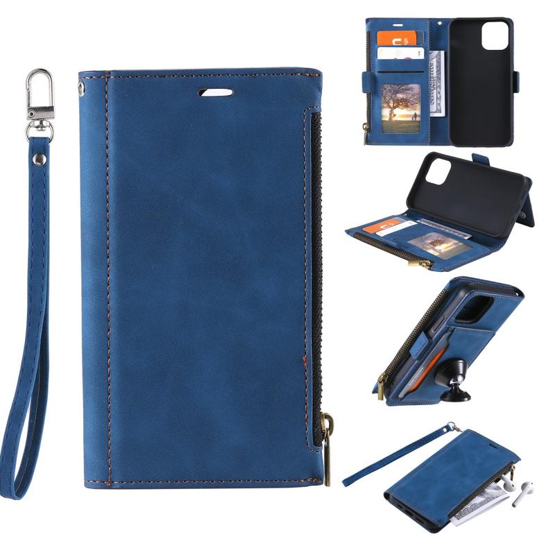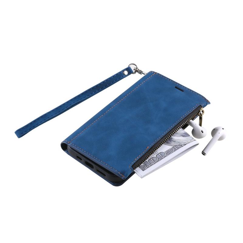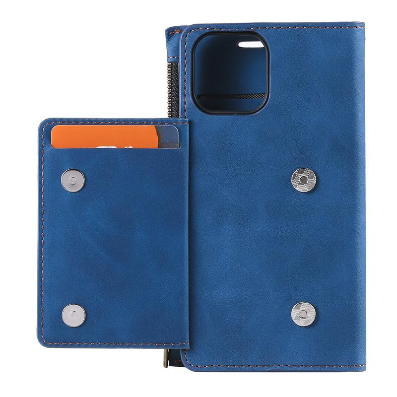 Saii Reißverschluss Schutzhülle mit Geldbörse und Riemen für iPhone 14 Plus