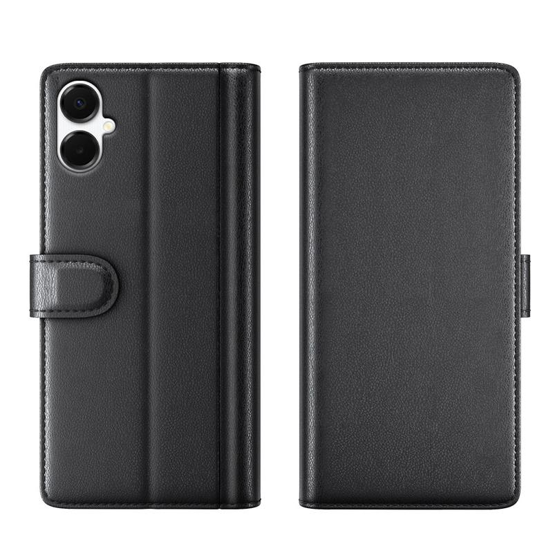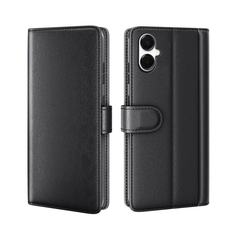 Eine hochwertige, anspruchsvolle Lederhülle für Ihr Samsung Galaxy A06 5G. Verleihen Sie Ihrem Telefon ein erstklassiges Aussehen und schützen Sie es gleichzeitig vor Kratzern und gewöhnlichen Beschädigungen. Diese multifunktionale Brieftasche aus weichem Leder hat Innenfächer für Karten und ein größeres Fach für Bargeld. Darüber hinaus verfügt das Samsung Galaxy A06 5G Etui aus echtem Leder über einen freihändigen Betrachtungsstand und einen vorderen Ausschnitt für Gespräche bei geschlossenem Etui.