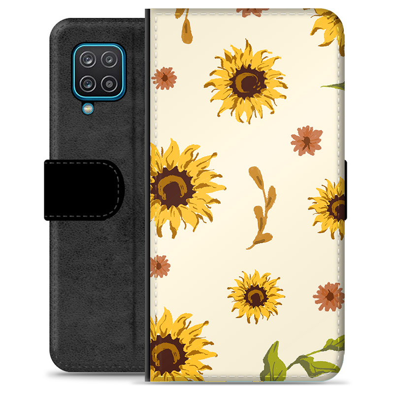 Samsung Galaxy A12 Premium Schutzhülle mit Geldbörse - Sonnenblume