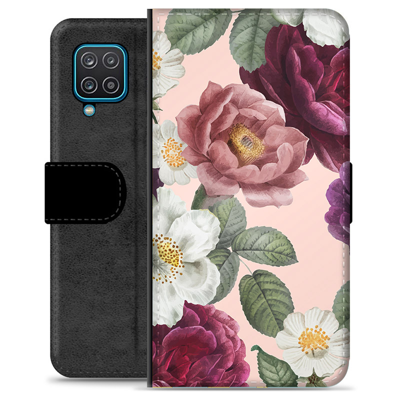 Samsung Galaxy A12 Premium Schutzhülle mit Geldbörse - Romantische Blumen